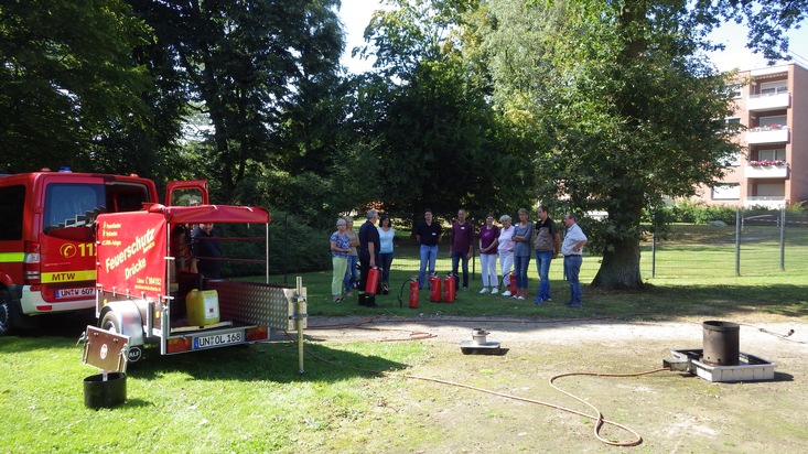 Am Dienstag, den 06.09.2016, gab es für die Mitarbeiterinnen und Mitarbeiter der Wohn- und Pflegegemeinschaft St. Katharina in Werne einen besonderen Unterricht. Rund 25 Personen wurden einerseits in der Nutzung von Feuerlöscheinrichtungen und davon 12 Mitarbeiterinnen und Mitarbeiter zu Brandschutzhelfern (BSH) ausgebildet.