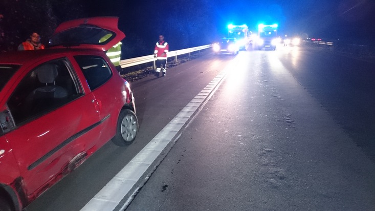 Um 18:59 Uhr ging es mit einer Ähnlichen Aufgabe in die Gegenrichtung zur BAB 1. In Fahrtrichtung Münster war es beim Überholvorgang - ebenfalls aus bislang nicht geklärter Ursache - zu einer Kollision zwischen zwei Fahrzeugen gekommen. Dabei wurde der Fahrer eines Kleinwagens, das mit zwei Personen besetzt war, erheblich verletzt. Auch im zweiten Fahrzeug, das mit vier Personen besetzt war, führte der Unfall bei einer Person zu Problemen, da sich dieser zur Zeit in einer psycho-somatischen Behandlung befindet. Zwei weitere PKW waren als Zeugen beteiligt, so dass weitere sechs Personen zu betreuen waren.