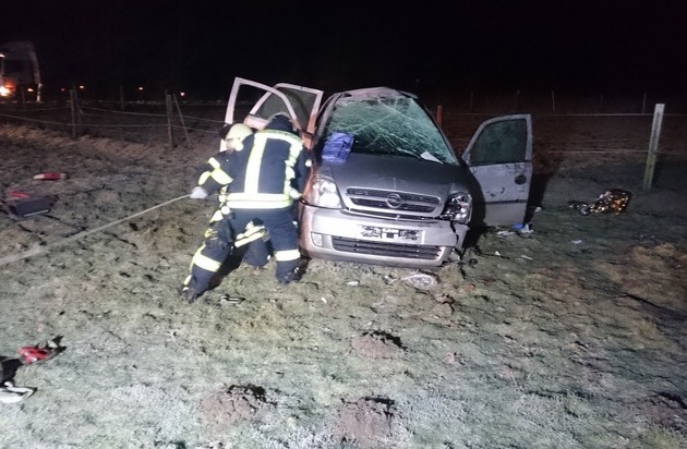 Um 1:21 Uhr wurde der Löschzug 1 der Freiwilligen Feuerwehr Werne am heutigen Freitag (30.12.2016) zu einem Verkehrsunfall mit auslaufenden Medien alarmiert. Vor Ort stellte sich die Situation anders dar. Aus noch ungeklärter Ursache war ein Opel auf glatter Straße aus Werne in Richtung Selm fahrend ins Schleudern geraten und von der Straße abgekommen. Dabei durchbrach er den Zaun einer Pferdeweise, überschlug sich mehrfach und blieb unbeleuchtet rund 30 m von der Straße entfernt auf der Weide liegen. Offensichtlich dauerte es mehr als eine Stunde, bis das Fahrzeug in völliger Dunkelheit entdeckt wurde, so dass der schwer verletzte Mann bei Minustemperaturen ausharren musste, bis er aus der misslichen Lage befreit wurde. Da er nicht in der Lage war, die Fahrertüre selbst zu öffnen, fand ihn ein junges Ersthelferpaar auf dem Fahrersitz, öffnete gewaltsam die Fahrertüre und nahm die Erstversorgung vor. Der Rettungsdienst sowie der Notarzt kümmerten sich um den unterkühlten sowie schwer verletzten Mann und brachten ihn in den Schockraum des Marienhospitals nach Lünen. Aufgrund verschiedener Hinweise - so befand sich etwa Blut an der Fahrzeugaußenseite - konnte nicht ausgeschlossen werden, dass es nicht weitere beteiligte Personen gab. Das löste eine größere Suchaktion von Polizei und Feuerwehr aus. Die Polizei alarmierte einen Hubschrauber, der mit einer Wärmebildkamera ausgestattet ist. Auch die Feuerwehr untersuchte große Geländebereiche und die Gräben entlang der Selmer Landstraße mit Wärmebildkamera und Handscheinwerfern. Beide Maßnahmen brachten die Sicherheit, dass keine weitere Person betroffen war. Mit der Seilwinde des Rüstwagens wurde das Fahrzeug zur Straße gezogen und an ein Abschleppunternehmen übergeben. Das Fahrzeug wurde durch die Polizei zur weiteren Untersuchung sichergestellt. Gegen 3:00 Uhr wurde die Einsatzstelle an die Polizei übergeben. Im Einsatz waren 18 Einsatzkräfte des LZ 1, der Rettungsdienst und der Notarzt aus Werne, mehrere Streifenfahrzeuge der Polizei sowie der Suchhubschrauber. Die Selmer Landstraße war für die Zeit der Rettungs-Such- und Bergungsarbeiten voll gesperrt.