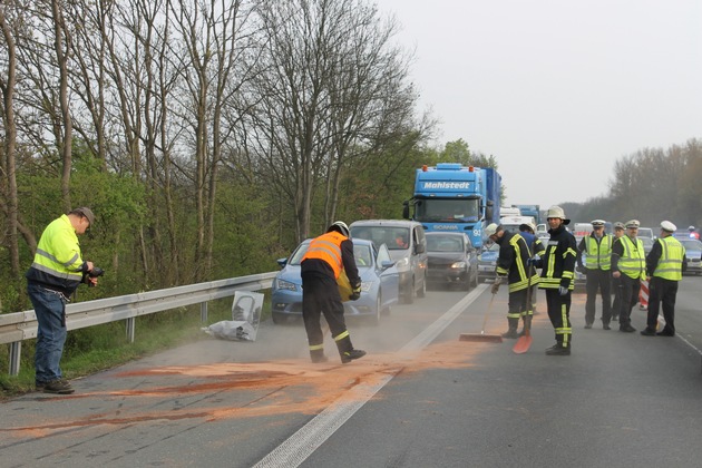 Die freiwilligen Feuerwehrkräfte räumten die linke Spur frei, sodass der Verkehr einspurig an der Unfallstelle vorbei geführt werden konnte.