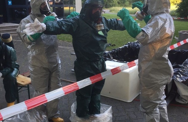 Nach Abschluss der Messungen konnte die Einsatzstelle gegen 21:30 Uhr an die Kriminalpolizei übergeben werden. Nach den Aufräumarbeiten sowie der Ausrüstung der Fahrzeuge in der Wache wurde der Einsatz gegen 23:30 Uhr beendet. Am heutigen Tag wird sich das betroffene Unternehmen mit einer Spezialfirma für die Dekontamination abstimmen, die die Säuberung der eingesetzten Gerätschaften und der betroffenen Laborbereiche übernehmen wird.