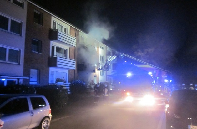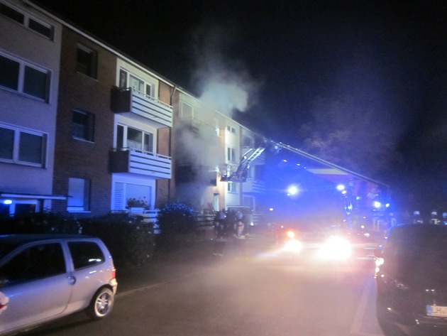 Am Montagmorgen wurde um 03:52 Uhr per Meldeempfänger der Löschzug 3 aus Stockum sowie der Löschzug 1 aus Werne Mitte mit dem Stichwort "Feuer_3 - Zimmerbrand" in die Kastanienstraße nach Stockum alarmiert. Eine Wohnung im Erdgeschoss stand bei Eintreffen der ersten Kräfte im Vollbrand. Die Flammen schlugen im Zusammenhang mit starkem Brandrauch aus dem Balkonfenster. Zwei Personen der anliegenden Wohnungen im ersten und zweiten Obergeschoss machten sich auf den Balkonen bemerkbar. Fünf Personen konnten sich selbstständig in Sicherheit bringen. Durch die starke Rauchentwicklung konnte das Treppenhaus nicht benutzt werden. Die eingesetzte Drehleiterbesatzung rettete zwei Personen per Korb von den Balkonen im ersten und zweiten Obergeschoss. Die erste Brandbekämpfung wurde mit einem C-Hohlstrahlrohr von außen vorgenommen um die Flammen einzudämmen. Die Angriffstrupps der zuerst eintreffenden Fahrzeuge durchsuchten die angrenzenden Wohnungen nach Personen. Hierfür musste sich gewaltsam Zugang zu den Wohnungen verschafft werden. Insgesamt waren 12 Personen leicht verletzt. Glücklicherweise keine schwer. Ein Hund konnte leider nur noch tot geborgen werden. Zwei Personen wurden durch Notärzte vor Ort untersucht und konnten wieder entlassen werden. Zehn Personen wurden mit Verdacht auf eine Rauchgasvergiftung zur weiteren Untersuchung in nahe gelegene Krankenhäuser gebracht. Zur Brandbekämpfung wurden mehrere Trupps unter schwerem Atemschutz im Innenangriff eingesetzt. Um 4:16 Uhr konnte der Brand unter Kontrolle gemeldet werden. Die Wohnung im Erdgeschoss brannte komplett aus. Die weiteren Wohnungen in dem Gebäude sind durch den Brandrauch in Mitleidenschaft gezogen worden. Alle Wohnungen sind nicht mehr bewohnbar. Das Ordnungsamt Werne kümmerte sich um die Unterbringung der Personen. Die Feuerwehr kontrollierte mit der Wärmebildkamera die betroffenen Bereiche auf versteckte Brandnester. Es wurde mit Hochleistungslüftern eine Überdruckbelüftung vorgenommen. Um 05:45 Uhr konnte der Löschzug 1 Werne Stadtmitte die Einsatzstelle verlassen. Der Löschzug 3 Stockum blieb für weitere Restlöscharbeiten sowie eine Brandwache noch vor Ort. Im Einsatz waren 45 freiwillige Einsatzkräfte der beiden Löschzüge Werne Stadtmitte und Stockum mit insgesamt zehn Fahrzeugen. Des Weiteren an diesem Einsatz beteiligt waren sechs Rettungswagen aus Werne bzw. dem Kreisgebiet, der Organisatorische Leiter Rettungsdienst, ein Notarzt aus Werne sowie der Leitende Notarzt des Kreises Unna, die Polizei Werne und das Ordnungsamt Werne.