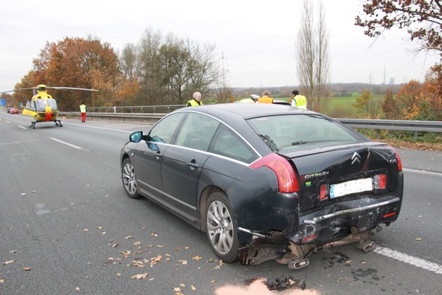 Der Löschzug 1 der Freiwilligen Feuerwehr Werne wurde mit dem Stichwort "2RTW_1NEF - VU PKW/LKW" auf die Bundesautobahn 1 in Fahrtrichtung Köln alarmiert. Die Einsatzstelle lag circa 1km vor der Abfahrt Hamm Bergkamen. Es handelte sich um Auffahrunfälle mit drei beteiligten PKW. Ein LKW konnte glücklicherweise noch kurz vor der Unfallstelle anhalten. Glücklicherweise wurde keine Person in Ihrem PKW eingeklemmt. Durch die vier Rettungswagen wurden zwei schwer verletzte Personen sowie zwei leicht verletzte Personen in umliegende Krankenhäuser gebracht. Die Feuerwehr sicherte die Einsatzstelle gegen den laufenden Verkehr und stellte den Brandschutz sicher. Es wurden die Batterien an mehreren PKW abgeklemmt und auslaufende Betriebsmittel abgestreut und verunreinigt wieder aufgenommen. Es waren 14 freiwillige Einsatzkräfte mit drei Fahrzeugen im Einsatz. Nachdem die Arbeiten der Feuerwehr erledigt waren wurde die Einsatzstelle an die Polizei übergeben. Um 12:10 Uhr konnte Einsatzende gemeldet werden. Des weiteren an diesem Einsatz beteiligt waren 4 RTW sowie ein Notarzt im Rettungshubschrauber Christoph 8 aus Lünen. Noch während den Aufräumarbeiten ereignete sich auf der Kreuzung Penningrode / Bahnhofstraße ein Verkehrsunfall mit auslaufenden Medien. Der Rüstwagen wurde zur Unterstützung dieser Einsatzstelle in die Penningrode entsandt.