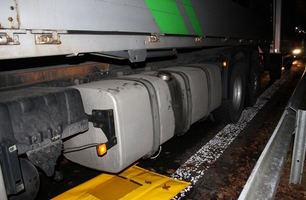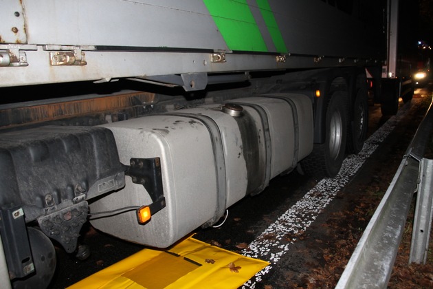 Um 6:37 Uhr wurde der Löschzug 1 der Freiwilligen Feuerwehr Werne zu einem Unfall auf der BAB 1 in Fahrtrichtung Bremen alarmiert. Ein Sattelzug war über das Ersatzrad eines vorausfahrenden LKW gefahren und hatte sich dabei den Unterboden und insbesondere eine Leitung an einem seiner Dieseltanks beschädigt. Der Fahrer, der zunächst aufgrund der starken Rauchentwicklung durch das mitgeschleifte Rad vermutete, dass sein Fahrzeug brennen würde, reagierte besonnen und fuhr noch aus dem fließenden Berufsverkehr auf den Rastplatz Im Mersch. Trotzdem liefen rund 350 bis 500 Liter Diesel auf die Fahrbahn und in die Kanalisation des Rastplatzes, bevor die eintreffenden Kräfte den Dieselfluss stoppen konnten. Während die Polizei den Rastplatz vollständig für den Verkehr sperrte, wurde zunächst der auslaufende Betriebsstoff mit einer sogenannten Spillbag aufgefangen, bis die Leitung provisorisch abgedichtet werden konnte. Gleichzeitig wurde die Kanalisation mit pneumatischen Dichtkissen abgedichtet und großflächig Bindemittel aufgetragen, um eine Kontaminationsverschleppung zu verhindern. Nach Übergabe der Einsatzstelle an die Untere Wasserbehörde konnte der Einsatz gegen 8:50 Uhr beendet werden und die 12 Einsatzkräfte mit vier Fahrzeugen wieder einrücken. Aktuell ist der Rastplatz für die Bergungs- und Reinigungsarbeiten, die durch Straßen.NRW durchgeführt werden, noch gesperrt.