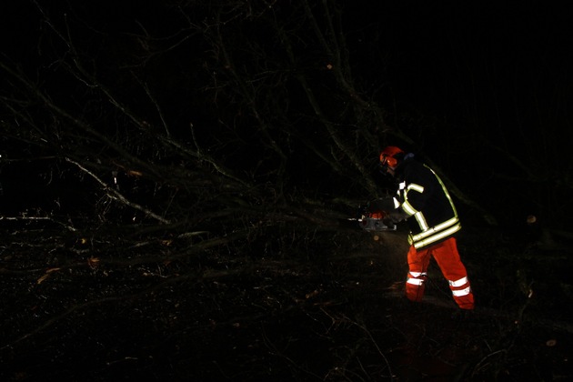 Das Sturmtief "Burglind" beschäftigte auch in Werne am Mittwochmorgen die freiwillige Feuerwehr. Der Löschzug 1 der Freiwilligen Feuerwehr Werne wurde um 05:44 Uhr mit dem Stichwort "TH_1 - Baum auf Fahrbahn" auf den Nordlippering alarmiert. Dort stürzte ein Baum quer über die Fahrbahn. Ein PKW wurde durch den umstürzenden Baum leicht an der Front beschädigt. Verletzt wurde glücklicherweise Niemand. Parallel zu diesem Einsatz sind weitere Bäume oder Äste in der Straße Baaken sowie in der Pagensstraße in Werne umgekippt bzw. versperrten die Fahrbahn. Die Feuerwehr beseitigte diese Hindernisse mit der Kettensäge bzw. räumte sie händisch von der Fahrbahn. Im Anschluss wurde die verschmutzte Straße mit dem Besen gesäuberte. Im Einsatz waren 16 Kameraden drei Fahrzeugen. Einsatzende war um 07:05 Uhr. Nachdem am Gerätehaus die Gerätschaften wieder gesäubert und wieder verlastet wurden, konnten Einsatzende gemeldet werden.