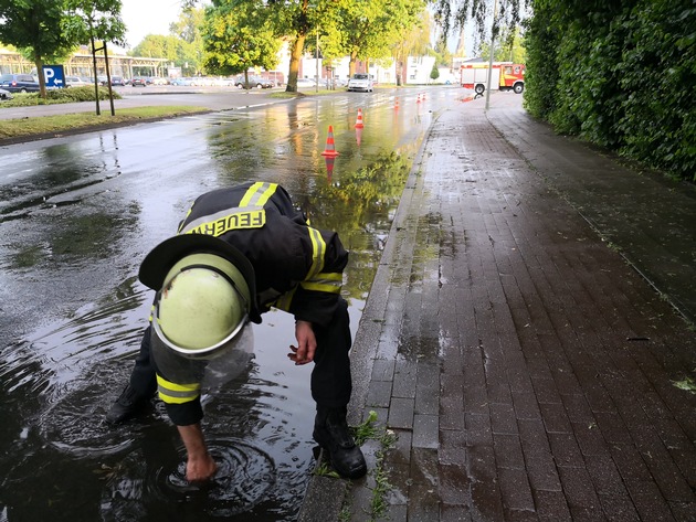 Der Löschzug 1 Stadtmitte der Freiwilligen Feuerwehr Werne wurde am Donnerstagabend um 20:06 Uhr per digitalem Meldeempfänger mit dem Stichwort "TH_1 - Höhe Kindergarten Fahrbahn unter Wasser, Amtshilfe f. Pol." an die Straße Fürstenhof alarmiert. Mehrere verstopfte Straßenabläufe sorgten nach dem Starkregen für die überflutete Straße. Aufgrund von Unfallgefahren an der Einsatzstelle und der nötigen Eigensicherung der Einsatzkräfte wurde der rechte überflutete Fahrstreifen mit Straßenleitkegeln abgesperrt. Die durch Unrat und Laub verstopften Behälter in den Straßenabläufen wurde gezogen und der Unrat am Straßenrand entleert. Das Wasser konnte so ungehindert abfließen und die Straße war wieder ungehindert befahrbar. Die Einsatzstelle wurde an die Polizei übergeben. Im Einsatz waren 9 Kameraden mit einem Fahrzeug. Nach circa 30 Minuten konnte Einsatzende gemeldet werden.