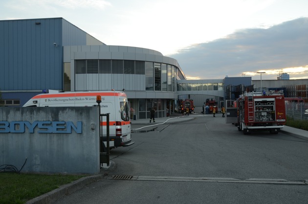 Bei Altensteigs größtem Arbeitgeber, der Firma Boysen im Industriegebiet Turmfeld, ist heute gegen 17.30 Uhr in der zentralen Absauganlage ein Feuer ausgebrochen. Da im inneren des Raumes eine immense Hitze entstanden ist, wurden die Atemschutztrupps angewiesen von zwei Seite in den Raum vorzugehen und mit der Brandbekämpfung zu beginnen. Dabei bestand die Gefahr einer Rauchgasdurchzündung, dies konnte verhindert werden.