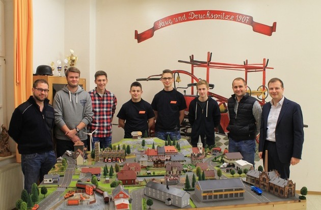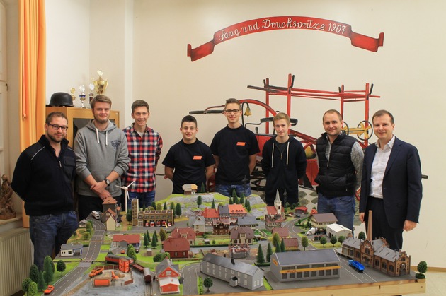 Ein vorweihnachtliches Geschenk konnte kürzlich die Löschgruppe Kirchhundem entgegen nehmen. Nach fast einjähriger Bauzeit wurde das neu gebaute Planspiel durch die Jugendfeuerwehrmitglieder , sowie dem Förderverein der Löschgruppe Kirchhundem mit dem 1. Vorsitzenden Christopher Mennekes an die Einsatzabteilung der Löschgruppe Kirchhundem übergeben. In der modernen Feuerwehrausbildung verwendet man Planspiele um komplexe Entscheidungssituationen zu simulieren. Reale Einsatzsituationen werden dabei an einem Modell abgebildet. Die Führungskräfte sollen hierbei eine angenommene Lage abarbeiten, die im Nachgang dann besprochen werden kann. Dieses Ausbildungsmodul fehlte den Kameraden aus Kirchhundem bisher noch. Nach der Abstimmung über Ausstattung, Aufbau und Größe der benötigten Planspielplatte, starteten die Jugendlichen im Februar 2015 hochmotiviert das Projekt "Bau einer Planspielplatte" und arbeiten seither eigenständig und sehr eifrig daran. Sie verabredeten sich regelmäßig zum gemeinsamen Aufbau von Häusern, Fabriken, sowie Landschaften und haben viel Spaß dabei gehabt. Auch für das leibliche Wohl sorgten die Jugendlichen durch gemeinsames Pizza backen im Gerätehaus selber. Für das erbauen investierten die Jugendlichen rund 600 Arbeitsstunden. Die Kosten, die sich auf ca. 1600,-EUR belaufen, wurden komplett durch den Förderverein der Löschgruppe Kirchhundem übernommen.