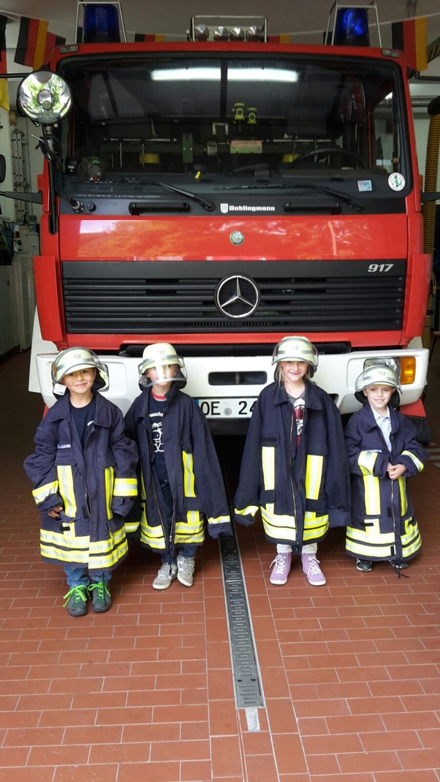 In der vergangenen Woche fand im Kindergarten Spatzennest in Hofolpe die alljährliche Brandschutzerziehung für die Schulanfänger statt. Daniel Baumhoff von der Fachgruppe Brandschutzerziehung/Brandschutzaufklärung erklärte den Kindern wie ein Feuer entsteht, das richtige Verhalten im Brandfall, sowie das Absetzen eines Notrufes wurde trainiert. Auch das richtige Anzünden eines Streichholzes unter Aufsicht und abbrennen einer Wunderkerze wurde geübt. Im Anschluss daran wurde das Gerätehaus und das Löschfahrzeug der Löschgruppe Hofolpe besichtigt. Zum Abschluss bekam jeder Schulanfänger eine Urkunde und das von der Fachgruppe erstellte Malbuch verliehen. Alle Kinder waren von dem Besuch bei der Feuerwehr begeistert.