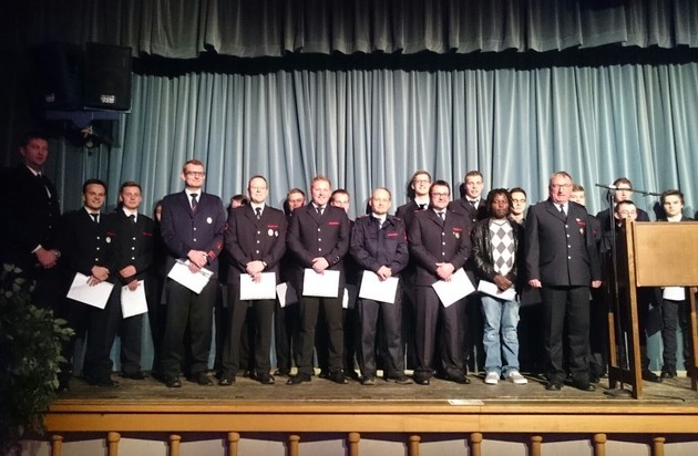 Zum Feuerwehrmannanwärter: Thomson Ngeufang Zum Feuerwehrmann/-frau: Manuel Haase, Bastian Jaspers, Janis Rieke, Marc Beckmann, Kelvin Schmitz, Florian Wirth Kerstin Schlegel Zum Oberfeuerwehrmann/-frau: Alexander Jaspers, Nicole Dettenberg, René Berens, David Färber, Christopher Berens, Johannes Döbbeler, Frederick Hester, Felix Patt, Manuel Hupertz, Leonard Rameil Zum Hauptfeuerwehrmann: Lars Fünfsinn, Meik Grewe Zum Unterbrandmeister: Marvin König Zum Oberbrandmeister: Manfred Schweitzer Zum Hauptbrandmeister: Christian Schmies, Oliver Stahl, Manuel Brüggemann Zum Brandinspektor: Matthias Hennemann Zum PSU-Assistent (Psychosoziale Unterstützung) wurde Manfred Schweitzer ernannt