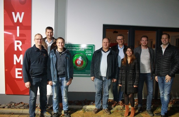 Auf dem Foto: Thorsten Koletzky (Löschgruppenführer Wirme), Mario und Mirco Fuhlen (Ersthelfer vor Ort), Stefan Steilmann (Vorsitzender Förderverein), Alexander Jaspers (Neujahrssänger und Vertreter ARGE Wirme), Gamze Icten-Kabacali (Volksbank Bigge Lenne), Stefan Spieren (Arzt und Ausbilder) Dirk Godon (Fa.GoMed)