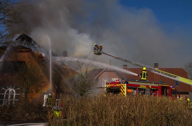 FW-PLÖ: Reetdachhaus wurde Opfer der Flammen In Warnau (Kreis Plön) brannte am Dienstag, 28.03. ein Reetdachhaus ab. Personen kamen nicht zu Schaden. Die Bewohner konnten das Gebäude rechtzeitig verlassen.