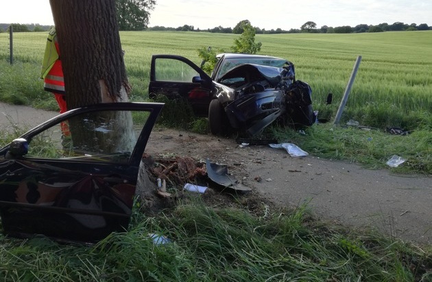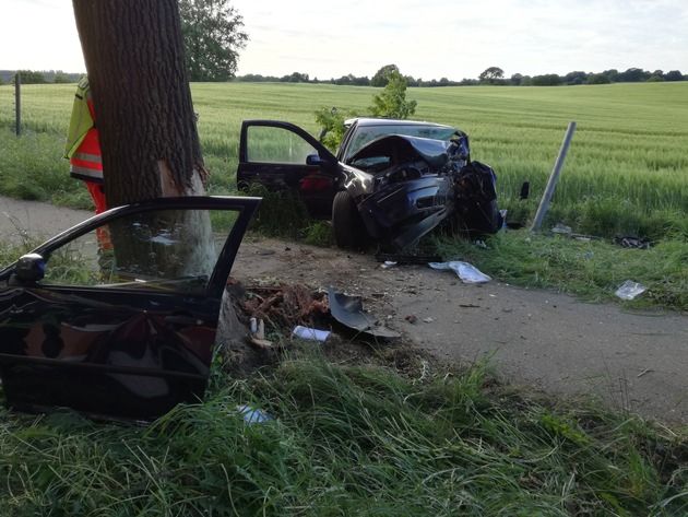 FW-PLÖ: Fahrzeuginsasse verstirbt nach Verkehrsunfall auf der B202, Höhe Rosenfeld. Eine weitere Person konnte mit schweren Verletzungen gerettet werden.