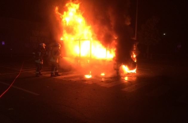 Beim Eintreffen der Einsatzkräfte stellte sich heraus, dass ein Abstellhaus für Einkaufswagen in voller Ausdehnung brannte.