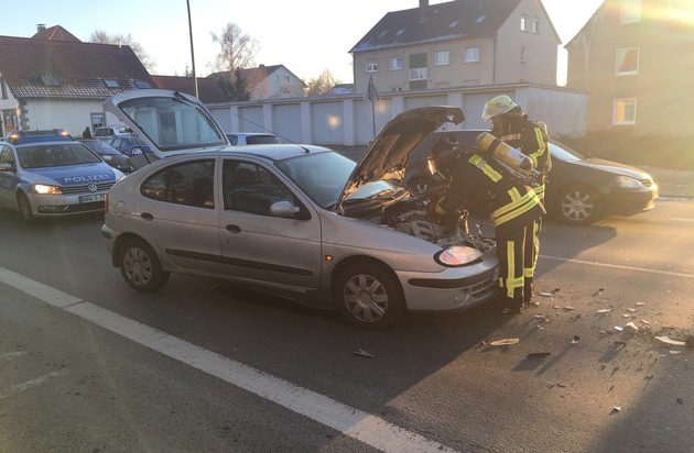FW Lage: PKW Brand nach Verkehrsunfall - 19.01.2017 - 15:56 Uhr