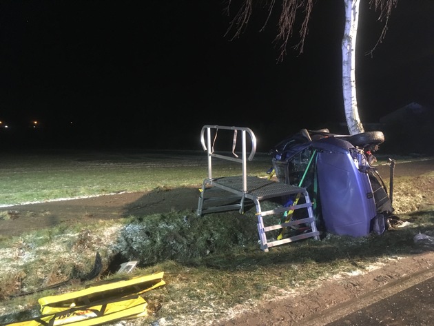 FW Lage: VU mit eingeklemmter Person - PKW gegen Baum - 12.02.2018 - 18:36 Uhr