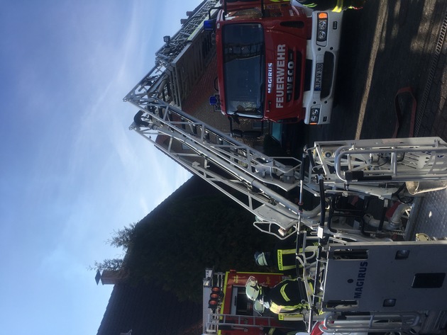 Zur Unterstützung wurde die Drehleiter vom Löschzug Lage nachalarmiert und der zuständige Schornsteinfegermeister zur Einsatzstelle geordert.