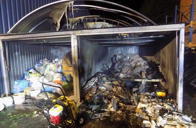Am Pfingstmontag ist es zu einem Brand von Müllcontainern in der Fröschener Straße in Thaleischweiler-Fröschen gekommen. Bislang unbekannte Täter hatten in einer Wellblechgarage, die zwischen zwei Lagerhallen stand, ein Feuer gelegt. Weiterhin waren zwei Big Packs die mit Baumaterial gefüllt gewesen waren, in Brand gesteckt worden. Gerade noch rechtzeitig rückte die Feuerwehr an und konnte aus den Garagen mehrere Propangasflaschen herausholen. Da in der Wellblechgarage hauptsächlich Plastikmüll und Gelbe Säcke gelagert waren, kam es zu sehr starker Rauchentwicklung. Der Sachschaden wird auf annähernd 10.000 Euro geschätzt, die Freiwillige Feuerwehr in Thaleischweiler war mit 21 Mann im Einsatz. Ihrem guten Einsatz ist es zu verdanken, dass es zu keiner Explosion kam. In dieser Sache sucht die Polizei dringend nach Zeugen. Wer hier etwas beobachtet hat, soll sich bitte unter 06333 9270 bei der Polizei in Waldfischbach-Burgalben melden.
