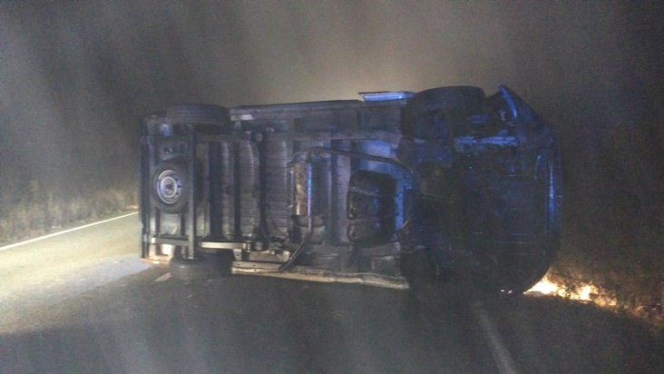 Am Dienstag, den 06.12.2016, gegen 17:12 Uhr ereignete sich auf der L 600, Pirmasens in Fahrtrichtung BAB 8 / Zweibrücken ein Verkehrsunfall. Ein 26-jähriger Mann aus dem Saarland befuhr mit einem Fiat Ducato die L 600 in der genannten Fahrtrichtung. Aus bisher nicht geklärter Ursache kam der 26-jährige Mann mit den Reifen des Fahrzeuges auf den Grünstreifen. Hieraufhin schaukelte sich das Fahrzeug auf und überschlug sich letztlich. Es kam auf der linken Fahrzeugseite zum Liegen auf der Fahrbahn. Die folgende Verkehrsunfallaufnahme und Bergung des Fahrzeuges hatte zur Folge, dass die L 600 nur einspurig aus Richtung Zweibrücken in Fahrtrichtung Pirmasens befahrbar war. Hierdurch kam es zu erheblichen Beeinträchtigungen des Berufsverkehrs. Da auch Betriebsstoffe an der Verkehrsunfallstelle ausgetreten waren, waren neben der Polizeiinspektion Pirmasens noch die Straßenmeisterei Waldfischbach-Burgalben, Feuerwehr Stadt Pirmasens und ein Rettungswagen im Einsatz. Die einspurige Sperrung der L 600 bestand von 17:20 Uhr bis 19:45 Uhr. Nach bisherigem Ermittlungsstand wurde der 26-jährige Fahrzeugführer bei dem Verkehrsunfall nicht verletzt.