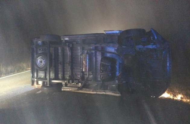 Am Dienstag, den 06.12.2016, gegen 17:12 Uhr ereignete sich auf der L 600, Pirmasens in Fahrtrichtung BAB 8 / Zweibrücken ein Verkehrsunfall. Ein 26-jähriger Mann aus dem Saarland befuhr mit einem Fiat Ducato die L 600 in der genannten Fahrtrichtung. Aus bisher nicht geklärter Ursache kam der 26-jährige Mann mit den Reifen des Fahrzeuges auf den Grünstreifen. Hieraufhin schaukelte sich das Fahrzeug auf und überschlug sich letztlich. Es kam auf der linken Fahrzeugseite zum Liegen auf der Fahrbahn. Die folgende Verkehrsunfallaufnahme und Bergung des Fahrzeuges hatte zur Folge, dass die L 600 nur einspurig aus Richtung Zweibrücken in Fahrtrichtung Pirmasens befahrbar war. Hierdurch kam es zu erheblichen Beeinträchtigungen des Berufsverkehrs. Da auch Betriebsstoffe an der Verkehrsunfallstelle ausgetreten waren, waren neben der Polizeiinspektion Pirmasens noch die Straßenmeisterei Waldfischbach-Burgalben, Feuerwehr Stadt Pirmasens und ein Rettungswagen im Einsatz. Die einspurige Sperrung der L 600 bestand von 17:20 Uhr bis 19:45 Uhr. Nach bisherigem Ermittlungsstand wurde der 26-jährige Fahrzeugführer bei dem Verkehrsunfall nicht verletzt.