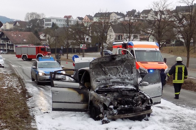 Am gestrigen frühen Donnerstagnachmittag befuhren zwei Pkw die L482 / Lindersbachstraße hintereinander, aus Rodalben kommend in Richtung Clausen. Das vordere Fahrzeug wurde von einer 38 Jahre alten Frau geführt, im Fahrzeug befanden sich noch ihre beiden Kinder. Das hintere Fahrzeug welches von einem 23 Jahre alten Mann geführt wurde, fuhr kurz vor dem Ortsausgangschild aufgrund zu gerin-gem Sicherheitsabstand in das Fahrzeugheck des vorderen. Das auffahrende Fahrzeug geriet durch den Aufprall sofort in Brand und wurde durch das Feuer komplett zerstört. Der Fahrer und alleinige Fahrzeuginsasse konnte rechtzeitig aus dem Fahrzeug steigen und erlitt lediglich leichte Schürfwunden an der rechten Hand. Die Fahrerin klagte im Anschluss über leichte Schmerzen im Halsbereich und Unwohlsein. Sie wurde ebenso wie der Fahrer des hinteren Fahrzeugs kurzzeitig ins Krankenhaus verbracht. Durch die Feuerwehr Rodalben welche mit 7 Mann im Einsatz war, wurde das brennende Fahrzeug schon vor Eintreffen der Polizei gelöscht. Im Anschluss half diese noch die Fahrspuren zu sperren und den Verkehr bis zum Eintreffen des Abschleppdienstes zu regeln. Durch die Hitzeentwicklung wurde der Asphalt der Fahrbahn in Mitleidenschaft gezogen. Der Gesamtschaden beläuft sich auf etwa 20.000 Euro.