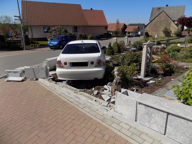 Am gestrigen Mittwochnachmittag ist es in Heltersberg in der Schwarzbachstraße zu einem Verkehrsunfall ohne einen Fahrer gekommen. Ein 41 Jahre alter Mann hatte seinen Pkw vor seinem Wohnanwesen zum Parken abgestellt. Hierbei muss er vergessen haben die Handbremse zu ziehen. Auf der leicht abschüssigen Straße machte sich das Fahrzeug selbstständig, fuhr die Straße etwa 50 m entlang, kollidierte mit einer Gartenmauer und kam im Vorgarten des Anwesens zum Stehen. Verletzt wurde hierbei zum Glück niemand. Der Gesamtschaden beläuft sich auf ca. 10.000 Euro.