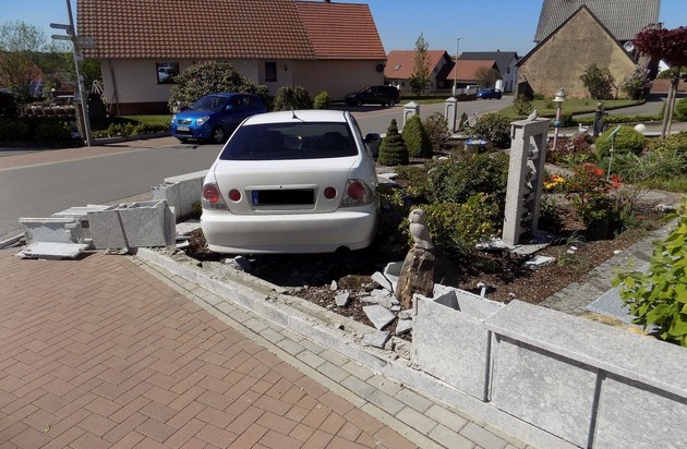 POL-PDPS: Heltersberg - Handbremse vergessen - Fahrzeug schlägt in Mauer ein