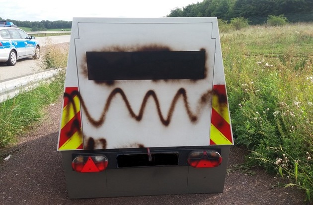 POL-PDPS: Sachbeschädigung einer mobilen Geschwindigkeits-Messanlage (Enforcement-Trailer)