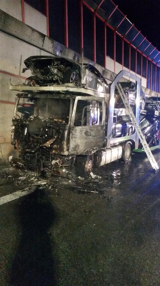 vermutlich aufgrund eines Motorschadens geriet am 09.10.2017, gegen 20.15 Uhr ein aus Polen kommender Auto-Transporter auf der B 10 Fahrtrichtung Zweibrücken in Höhe der Hüsterhöhe in Brand. Der Fahrer des LKW konnte rechtzeitig aus dem Führerhaus flüchten und blieb unverletzt. Der LKW und drei geladene hochwertige Neufahrzeuge wurden durch den Brand komplett zerstört. Die Feuerwehr Pirmasens war mit 40 Mann im Einsatz. Es entstand Sachschaden in Höhe von etwa 300 000,-- Euro. Die B 10 musste für die Bergungsmaßnahmen für etwa drei Stunden in Fahrtrichtung Zweibrücken gesperrt werden.