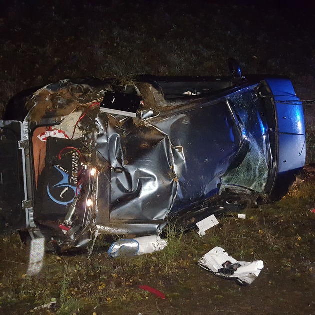 Der Unfallverursacher befuhr am Samstagabend die B10 von Pirmasens kommend in Fahrtrichtung Landau. Zwischen den Abfahrten Pirmasens-Sommerwald und Pirmasens-Haseneck kam er, infolge nicht angepasster Geschwindigkeit, auf regennasser Fahrbahn in einer Rechtskurve nach rechts von der Fahrbahn ab, fuhr über den Standstreifen hinweg in die Böschung und kollidierte dort mit einem Leitpfosten. In der Folge überschlug sich der PKW und blieb in Seitenlage auf der Beifahrerseite liegen. Der Fahrer konnte sich aus eigener Kraft aus dem Pkw befreien und wurde mit Verletzungen ins Krankenhaus verbracht. Der Gesamtschaden beläuft sich auf circa 8000 Euro. Während der Unfallaufnahme und Bergung des PKW wurde die B10 in diesem Teilstück halbseitig gesperrt. Trotz deutlicher Absicherung fuhr eine Verkehrsteilnehmerin während der Unfallaufnahme in die Absperrung und zerstörte dabei Teile des zur Absicherung der Unfallstelle genutzten Absperrmaterials.