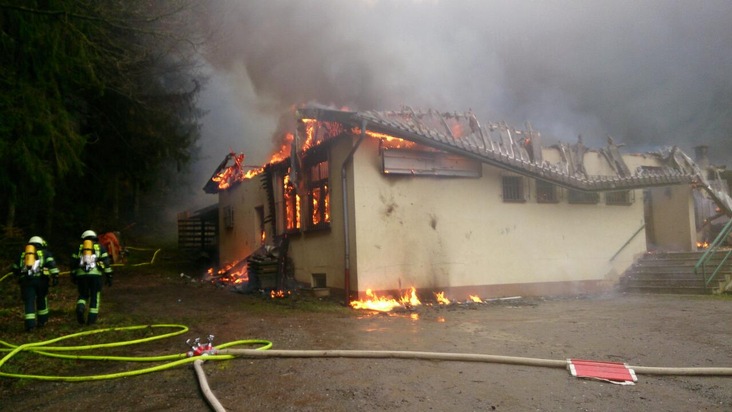 Gegen 11.15 Uhr meldete die Feuerwehr, dass das Schützenhaus in der Lindersbach in Rodalben im Vollbrand steht. Insgesamt 45 Feuerwehrkräfte mit 14 Fahrzeugen löschten das Vereinsheim. Eine besondere Gefahrenquelle für die Einsatzkräfte war ein Gastank, der gesichert werden konnte. Bezüglich der starken Rauchentwicklung geht die Feuerwehr nicht von einer Gesundheitsgefährdung für die Bevölkerung aus. Bei dem Einsatz wurde niemand verletzt. Nachdem alle Brandnester gelöscht sind, wird die Kriminalpolizei ihre Ermittlungsarbeit aufnehmen.