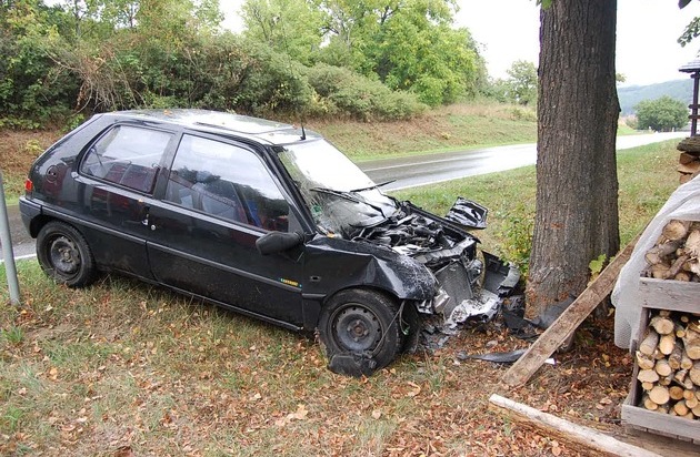 POL-PDKL: Von der Fahrbahn abgekommen und gegen Baum geprallt