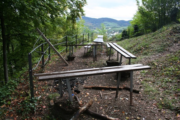 Die Sitzgruppe an der Burg "Alt-Wolfstein" haben einige "Flaschengeister" mutwillig beschädigt. Drei Bänke wurden samt Beton-Fundamenten aus der Erde gerissen. Bei einer Bank wurden die Hölzer beschädigt. Außerdem wurden an dem daneben befindlichen Metallgeländer diverse Stäbe verbogen. Augenscheinlich war die Örtlichkeit Platz eines Trinkgelages mehrerer Personen. Einige leere "kleine Klopfer" und eine zerbrochene Glasflasche lagen um die Ruhebänke herum. Die Gegenstände wurden von der Polizei zur Beweissicherung sichergestellt. Eine genaue Schadenshöhe ist wie die Einschränkung der Tatzeit noch nicht bekannt. Die Polizei hofft, dass sich die Verursacher bei dem Bürgermeister melden. So können kostenintensive Spurenuntersuchungen vermieden werden. Hinweise zu den vermutlich weithin zu hörenden Vandalen bitte an die Polizei in Lauterecken unter Telefon-Nummer 06382 911 0.