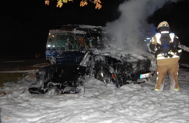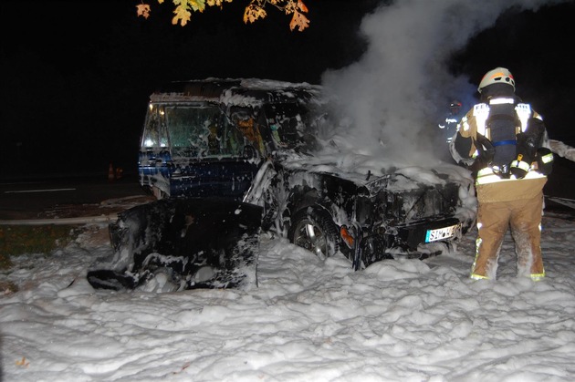 Aus bisher ungeklärter Ursache geriet am Sonntag, 11.10.2015 gegen 19.30 Uhr auf der Kreisstraße 10 in Winnweiler ein PKW in Brand. Die Insassen konnten rechtzeitig den PKW verlassen. Verletzt wurde niemand. Am PKW entstand ein Sachschaden von ca. 3000 Euro. Die Feuerwehr Winnweiler konnte den Brand in kürzester Zeit löschen.