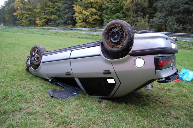 POL-PDKL: Fahrzeug überschlägt sich - Unfallflüchtiger gesucht