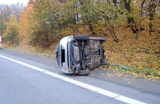 Ein 30 jähriger Fahrer eines Ford Focus verlor am Freitagmorgen die Kontrolle über sein Fahrzeug. Beim Befahren der A 62 in Fahrtrichtung Pirmasens, kam er kurz vor der Ausfahrt Kusel nach rechts von der Fahrbahn und geriet in die angrenzende Böschung. Dort überschlug er sich mehrmals mit seinem Fahrzeug und kam anschließend auf der Seite liegend zum Stillstand. Die beiden Insassen des Ford wurden schwer verletzt und mit einem Rettungsfahrzeug in ein nahegelegenes Krankenhaus gefahren. Der entstandene Sachschaden beläuft sich auf ca. 8000 Euro.