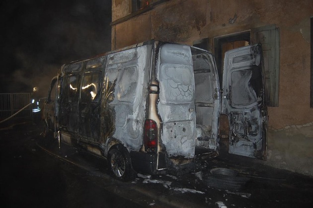 Ein Transporter ist in der Nacht von Freitag auf Samstag in der Schulstraße in Medard in Brand geraten. Das Fahrzeug wurde von seinem Benutzer am Freitagabend in unmittelbarer Nähe zu einem Wohnanwesen abgestellt. Kurz nach Mitternacht wurde der Mann durch laute Geräusche darauf aufmerksam, dass sein weißer Kastenwagen in Flammen steht. Nach Absetzen eines Notrufs wurde das Fahrzeug durch die Feuerwehr gelöscht. Der Kleinbus war allerdings bis zum vollständigen Ablöschen bereits größtenteils ausgebrannt. Durch die starke Hitzeentwicklung und die Flammen entstand zudem Sachschaden an dem Wohngebäude, neben welchem das Fahrzeug abgestellt war. Der entstandene Sachschaden an Transporter und Gebäude wird auf über 3.500 Euro geschätzt. Die Brandursache ist bisher ungeklärt. Das Fahrzeug wurde zwecks Spurensuche und Ursachenforschung durch die Polizei sichergestellt. Ebenso folgen weitere Ermittlungen. Falls jemand Beobachtungen gemacht hat, welche im Zusammenhang mit dem Fahrzeugbrand stehen könnten, wird er gebeten, sich bei der Polizeiinspektion Lauterecken unter der Telefonnummer 06382 911 0 zu melden.