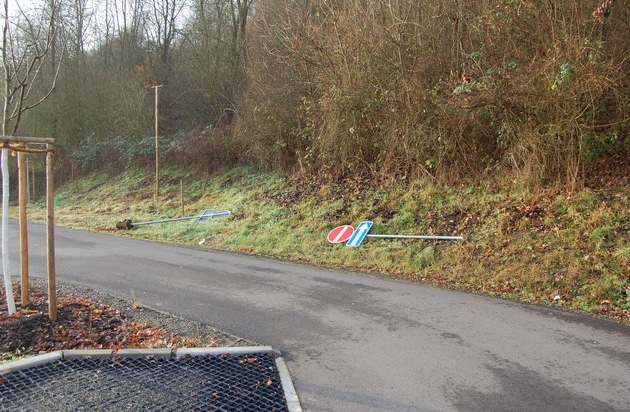 Der Tatverdächtige hat insgesamt zwei Verkehrsschilder samt Betonsockel rausgehebelt und einen weiteren Pfosten mit Schild abgebrochen. Die Höhe des Sachschadens lässt sich derzeit noch nicht beziffern. Wegen Sachbeschädigung hat die Polizei ein Ermittlungsverfahren eingeleitet.
