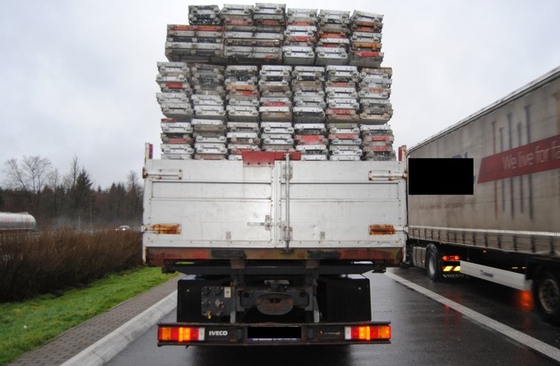 Am späten Dienstagnachmittag kontrollierten Beamte der Schwerverkehrsüberwachung der Autobahnpolizei Kaiserslautern einen auffällig beladenen Lkw. Die Ladung, bestehend aus Gerüstbauteilen war nicht ordnungsgemäß gesichert. Ein Herabfallen der beförderten Gegenstände war nicht mehr auszuschließen. Dem 45 jährigen Fahrer wurde bis zum Umsetzten der Ladung und dem Herstellen eines verkehrssicheren Zustandes die Weiterfahrt untersagt. Gegen ihn und den Halter des Lkw wurden Bußgeldverfahren eingeleitet.