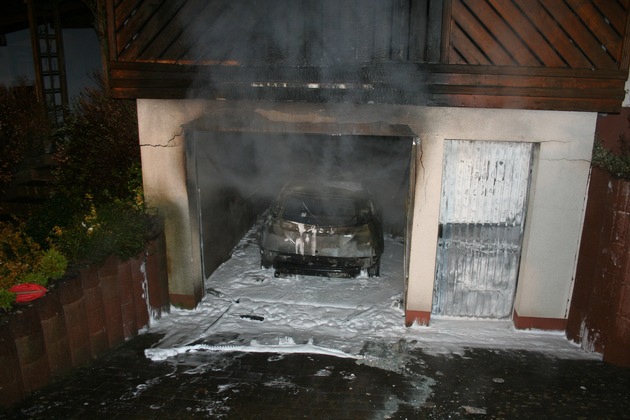 ~In den frühen Morgenstunden des Ostermontags brennt ein Pkw in einer Garage in Medard komplett aus. Gegen 03.00 Uhr morgens wurden die Hauseigentümer des Anwesens An der Kirche 3 in Medard durch mehrere Knallgeräusche geweckt. Bei der Nachschau stellten sie fest, dass ihr in der Garage abgestellter Ford Focus lichterloh in Flammen stand. Die Feuerwehr konnte den Brand glücklicherweise so zügig löschen, dass die Flammen nicht auf das Wohnhaus übergreifen konnten. Dadurch, dass die Garage nun einsturzgefährdet ist und die Terrasse über der Garage ebenfalls in Mitleidenschaft gezogen wurde, wird der Schaden auf ca. 50000 Euro geschätzt. Die Brandursache ist noch unklar. Wer verdächtige Wahrnehmungen zur Tatzeit in Tatortnähe gemacht hat, wird gebeten sich mit der Polizeiinspektion Lauterecken unter 06382/911-0 in Verbindung zu setzten.