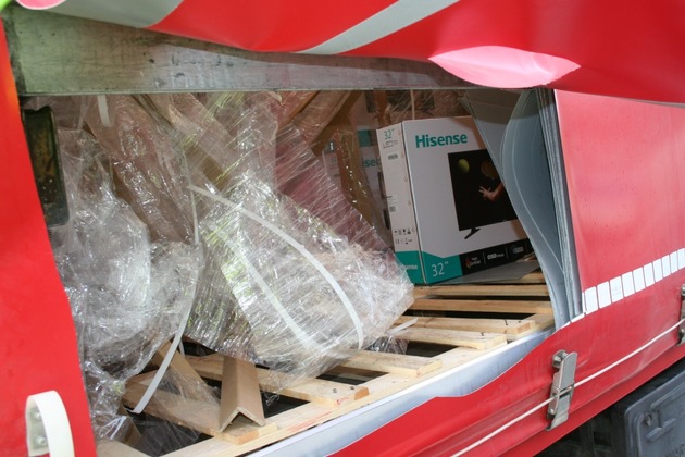Während der LKW-Fahrer auf dem Parkplatz "Drehertal" seine Tagesruhepause hielt, machten sich unbekannte Täter in der Nacht von Dienstag auf Mittwoch über seine Ladung her. Zunächst schnitten sie mehrfach die Plane des Aufliegers ein, um zu kontrollieren, was sich auf der Ladefläche befindet. Anschließend öffneten sie die Plane am hinteren Ende durch einen ca. 1 x 1 Meter großen Schnitt und entwendeten insgesamt 210 TV Geräte. Der Wert des Diebesgutes beläuft sich auf ca. 42000 Euro.