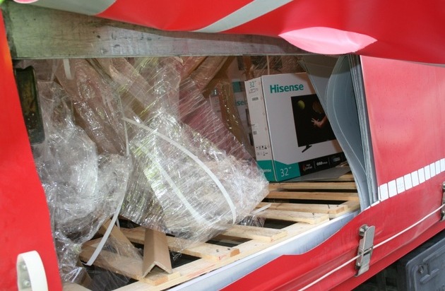 Während der LKW-Fahrer auf dem Parkplatz "Drehertal" seine Tagesruhepause hielt, machten sich unbekannte Täter in der Nacht von Dienstag auf Mittwoch über seine Ladung her. Zunächst schnitten sie mehrfach die Plane des Aufliegers ein, um zu kontrollieren, was sich auf der Ladefläche befindet. Anschließend öffneten sie die Plane am hinteren Ende durch einen ca. 1 x 1 Meter großen Schnitt und entwendeten insgesamt 210 TV Geräte. Der Wert des Diebesgutes beläuft sich auf ca. 42000 Euro.