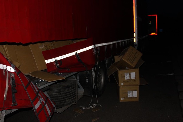 Mittwochnacht schnitten unbekannte Diebe auf dem Parkplatz "Entenpfuhl" an der BAB 6 die Plane eines LKW-Anhängers auf, während der Fahrer vorne im LKW schlief. Sie entwendeten ein neues Fahrrad der Marke Scott und mehrere Kartons mit Fahrradersatzteilen. Der Schaden beläuft sich auf ca. 3000 Euro.