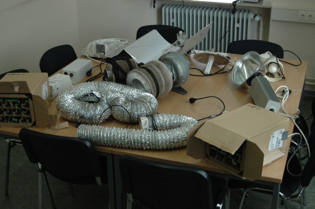 Trotz seiner "Sicherungsmaßnahmen" und "Lockangebote" sind bei einem 26-Jährigen am Freitagmorgen zahlreiche Rauschgiftpflanzen gefunden worden. Mit einem Durchsuchungsbeschluss trafen die Polizeikräfte bei dem Tatverdächtigen ein. Nachdem ihm der Beschluss eröffnet wurde, gestand er den Besitz von einigen Pflänzchen ein und übergab sie den Ermittlern. Die ließen sich jedoch nicht von dem scheinbaren Erfolg blenden und durchsuchten konsequent die Räumlichkeiten. Weitere kleinere Funde wurden gemacht und schließlich eine verschraubte Wandtafel gefunden. "Dahinter sei ein Wespennest", blieb ebenfalls ohne Wirkung. Ein Akkuschrauber eröffnete den Einblick in eine Indoor-Rauschgift-Plantage. Heizstrahler und Isolierfolien erhitzten den Raum. Zahlreiche Aufzuchts-Pflanzen und bereits abgeerntete Cannabispflanzen wurden sichergestellt.