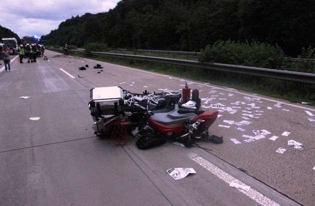 Am frühen Abend des 4.7.2016 befuhr ein 53-jähriger Motorradfahrer die Autobahn A6 in Richtung Saarbrücken. Kurz hinter der Anschlussstelle Enkenbach-Alsenborn kam er mit seiner Maschine nach links von der Fahrbahn ab und fuhr in den Grünstreifen. Dort stürzte er und rutschte weiter bis er dann auf dem Asphalt zum Stillstand kam. Er wurde mit Verdacht auf schwerste Verletzungen ins Westpfalzklinikum nach Kaiserslautern verbracht. Warum er in den Grünstreifen geriet ist ungeklärt. Nach derzeitigem Erkenntnisstand ist kein weiteres Fahrzeug beteiligt. Die Autobahn musste für ca. 45 Minuten voll gesperrt werden. Der Gesamtschaden beläuft sich auf ca. 10000 EUR. Die Feuerwehr Enkenbach, ein Rettungswagen wie auch der Notarzt waren vor Ort.