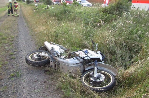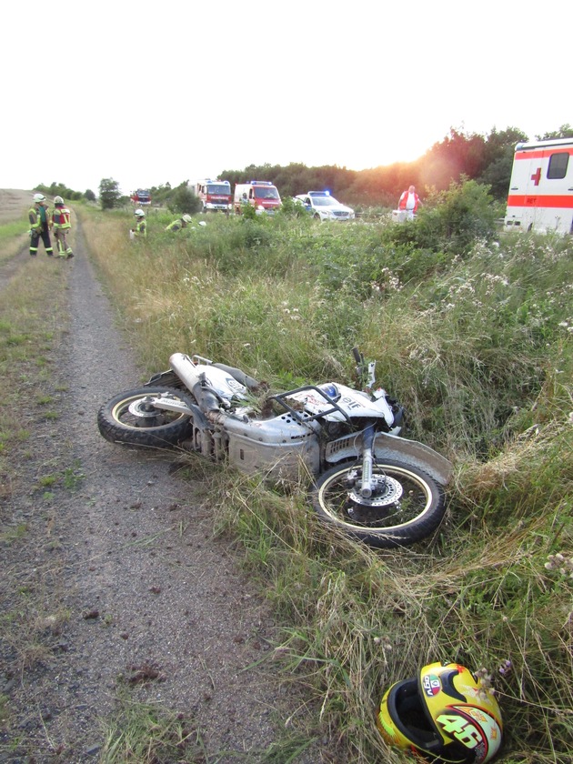 Am Abend des 31.7.2016 gegen 20.00h befuhr ein 29-jähriger Motorradfahrer mit seiner 25-jährigen Soziusfahrerin die Autobahn 63 in Richtung Mainz. Infolge kurzer Unachtsamkeit kam der Fahrer zwischen Winnweiler und Göllheim auf den Seitenstreifen, verlor dort die Kontrolle über sein Motorrad und rutschte durch den Grünstreifen bis er ca 10m neben der Fahrbahn auf einem Feldweg zum Stillstand kam. Hierbei wurde die Soziusfahrerin schwer, jedoch nicht lebensgefährlich, verletzt. Der Fahrer erlitt ebenfalls Verletzungen die einen Transport ins Krankenhaus notwendig machten. Das DRK und die freiwillige Feuerwehr Winnweiler waren im Einsatz. Das Motorrad musste abgeschleppt werden. Die Höhe des Sachschadens wird auf 3500 EUR geschätzt./Se.