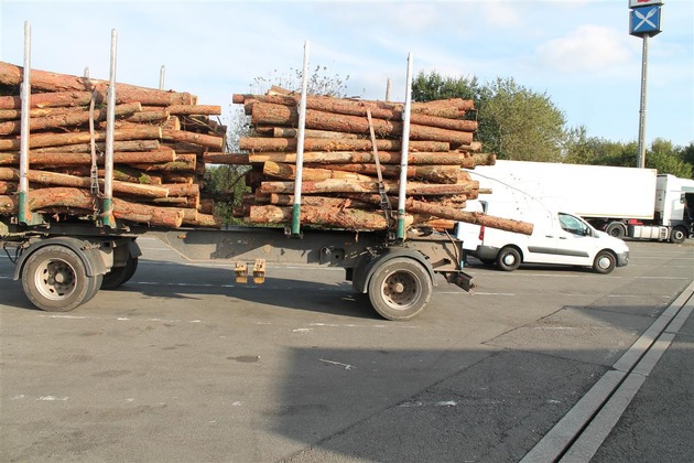 Am Nachmittag des 13.10.2016 fiel den Kontrollbeamten für Schwerverkehr ein Transporter auf,der mit Baumstämmen beladen war. Dieser befuhr die Autobahn A6 in Richtung Saarbrücken. Er konnte an der Raststätte Ramstein angehalten werden. Es wurde festgestellt, dass die geladenen Baumstämme seitlich und nach hinten viel zu weit herausragten, und auch nicht ausreichend mit Spanngurten gesichert waren. Dem Fahrer wurde die Weiterfahrt untersagt. Noch vor Ort mußte er mit einer Motorsäge die Überstände absägen und die Ladung mit zusätzlichen Gurten sichern. Dann wurde die Weiterfahrt gestattet. Eine Anzeige wird gefertigt./Se.