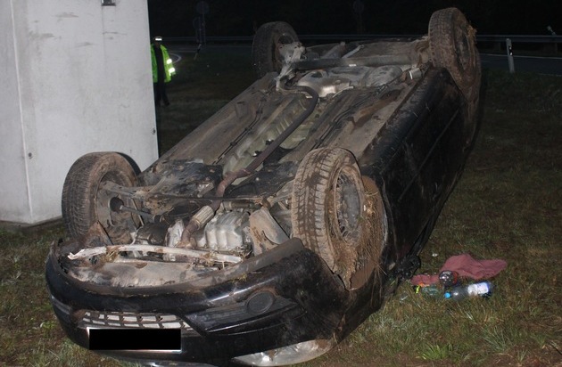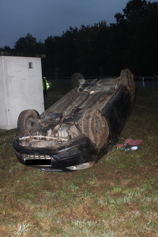POL-PDKL: A6/Kaiserslautern, Zu schnell in die Ausfahrt gefahren, Pkw überschlägt sich