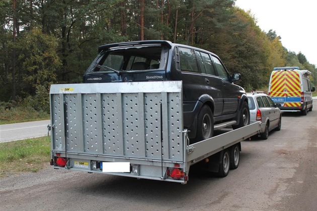 Den Beamten des Schwerverkehrskontrolltrupps fiel am Nachmittag des 19.10. gegen 17.40h auf der Autobahn A6 ein Auto mit Anhänger auf. An der Zufahrt Einsiedlerhof konnte das Fahrzeug angehalten werden. Es handelte sich um einen normalen PKW an welchem ein Anhänger zum Transport von Autos angehängt war.Auf dem Hänger stand ein Geländewagen. Anhand der mitgeführten Papiere konnte festgestellt werden, dass das Auto maximal 1400 kg ziehen dürfte. Der Hänger mit Geländewagen wog jedoch 2730kg. Dies bedeutete eine Überschreitung der so genannten Anhängelast um 95 %. Die Weiterfahrt wurde untersagt und der Hänger an Ort und Stelle abgestellt. Eine Anzeige wird vorgelegt./Se