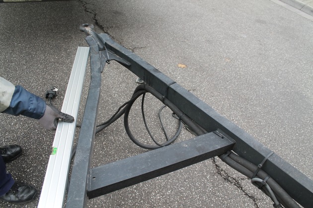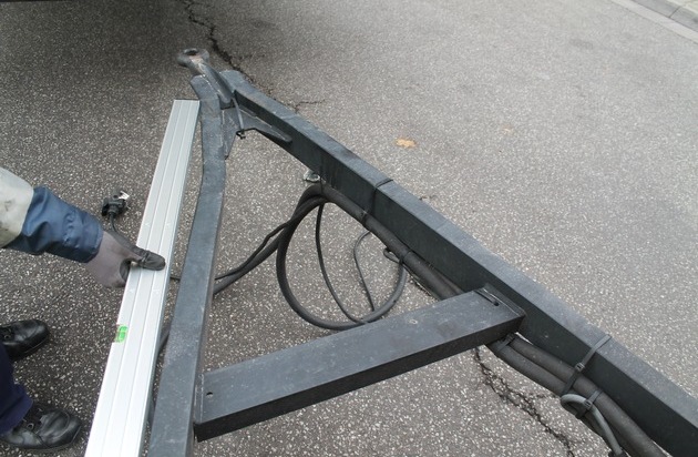 Einen Lkw mit Anhänger haben Beamte der Schwerverkehrsüberwachung der Autobahnpolizei Kaiserslautern am Dienstagmittag an der A6 auf dem Parkplatz "Schwarzbachwiesen" kontrolliert. Während der Kontrolle stellten die Beamten mit Entsetzen fest, dass die Verbindungseinrichtung (Zuggabel) zwischen Lkw und Anhänger extrem verbogen war. Außerdem waren neben kleineren Mängeln an der Fahrzeugkombination auch noch fehlende Ausrüstungsgegenstände wie z.B. Unterlegkeile zu beanstanden. Da die Verkehrssicherheit des Lastzuges nicht mehr gegeben war, wurde die Weiterfahrt an Ort und Stelle untersagt. Neben einer Anzeige gegen den Lkw-Fahrer wird auch gegen den Fahrzeughalter ein Bußgeldverfahren eingeleitet.